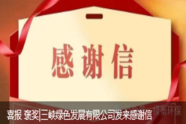 喜報 褒獎|三峽綠色發(fā)展有限公司發(fā)來感謝信