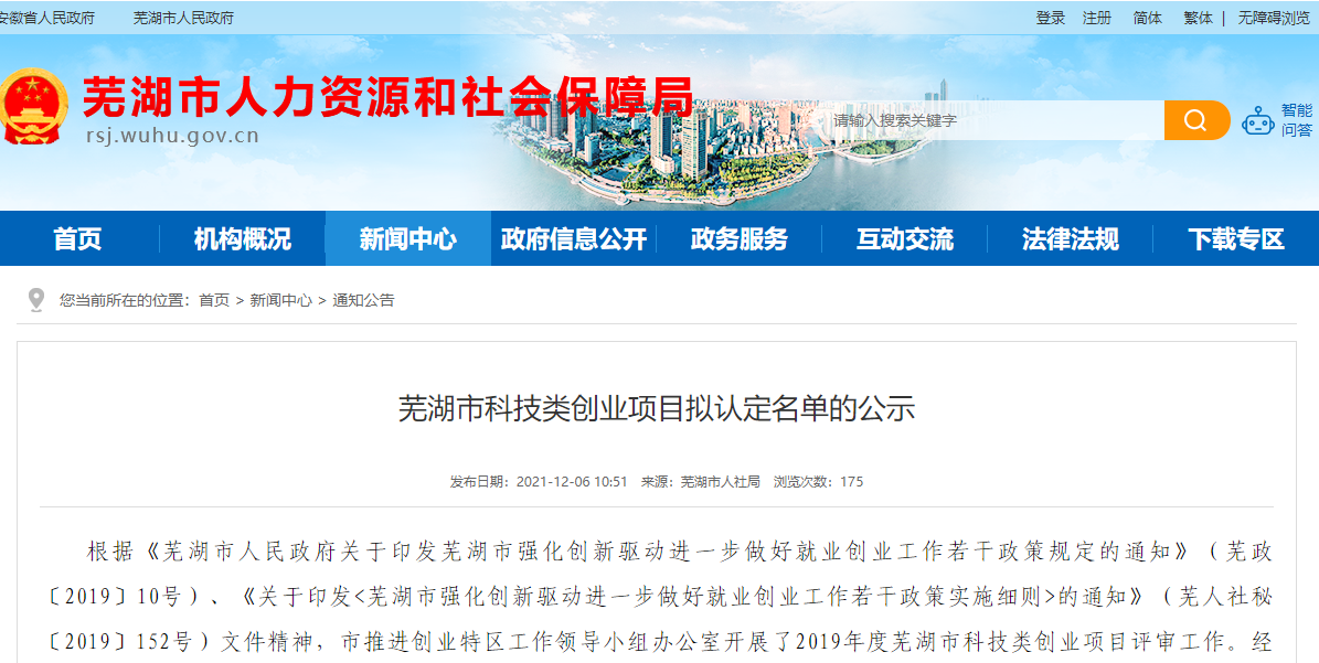 新聞喜訊2021年11月20日,由安徽省蕪湖市人力資源和社會保障局、蕪湖市財政局、蕪湖市科技局等單位牽頭組織開展“2019年度科技類創(chuàng)業(yè)項目評審的評選工作”,經(jīng)...
